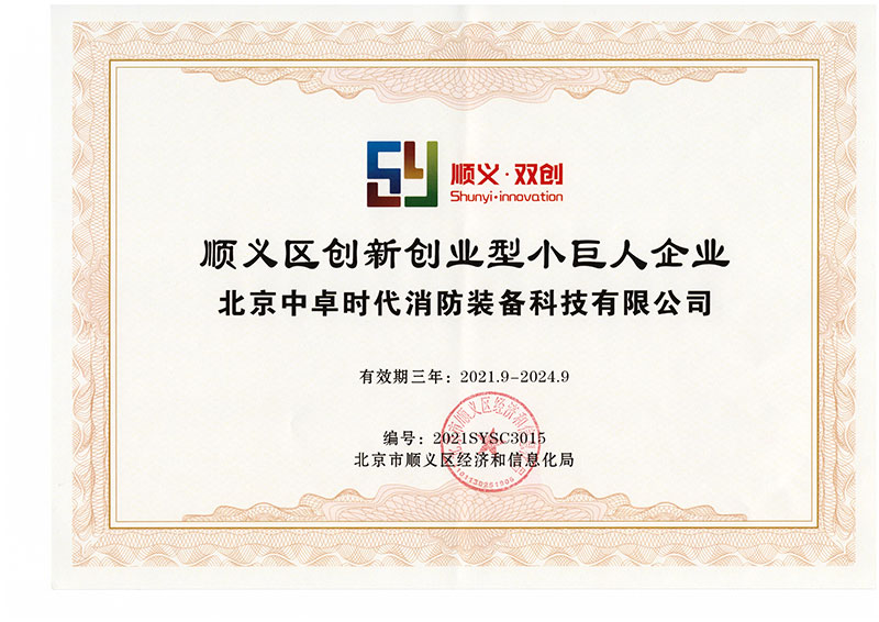 順義區(qū)創(chuàng)新創(chuàng)業(yè)型小巨人企業(yè)證書