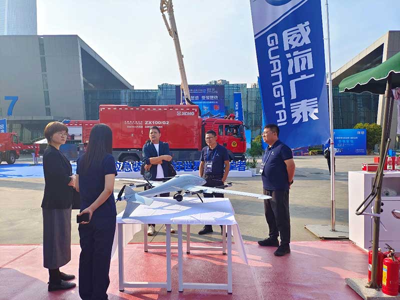 消防車輛展商涵蓋所有石化石油系統主流供應商,北京中卓時代消防裝備科技有限公司(以下簡稱“中卓時代”)作為集團代表品牌首次強勢入駐,展品為奔馳底盤18噸泡沫車、消防機器人、巡檢無人機,并在10月12日由周碧池發言做專題演講,主題為:“多維立體化應急救援技術”。即整合廣泰集團資源提出了多維立體化應急救援概念,集消防車、無人機、消防機器人、醫療救護、應急消防救援的一體化信息平臺,共同構建起一座堅固而靈活的應急消防救援堡壘。在研討會上,中石化領導非常關注數字化、智能化、共享化。并對我公司參展的巡檢無人機產生濃厚的興趣,積極推進現場考察活動。